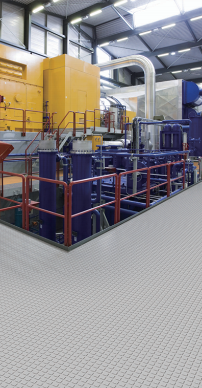 适用于极高负荷环境的橡胶地板 经典柔和单色 圆形浮点表面结构