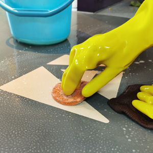 先将地板表面上杂物清除;