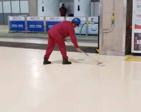 打蜡前要检查现场通风是否良好,地面是否已清洗干净、干燥,否则不得进行涂蜡。涂蜡要用专用蜡拖,采用∞涂蜡工艺,一般弹性橡胶地板涂蜡2-3遍。蜡水未干透前严禁上人走动,要做好隔离警示,保证涂蜡效果。